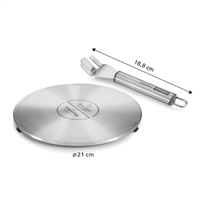 Adaptér na indukciu Tescoma GrandCHEF ø 21 cm . Adaptér na indukciu Tescoma umožňuje používanie nemagnetického riadu na indukčných varných doskách, vhodný pre hliníkový, nerezový, liatinový, sklenený a keramický riad. Vyrobený z prvotriednej nehrdzavejúcej ocele s hliníkovou akumulačnou vložkou a odnímateľnou rukoväťou pre bezpečnú manipuláciu. Vhodný do umývačky. 3 roky záruka.