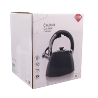Čajník nerez STYLISH 3 l . Luxusný čajník v nezvyčajnom hranatom tvare s odklápajúcou píšťalkou je vyrobený z kvalitného nerezu v modernom designe. Výborne sa uplatní v klasickej aj modernej kuchyni. Farba čierna. Materiál: nerez, plast. Rozmery: celkový objem 3 l, využiteľný objem 2,3 l, priemer 21 cm, vťška 24 cm. Vhodný pre všetky typy spotrebičov. Čajník je potrebné plniť minimálne do polovice, aby nedochádzalo k jeho prehrievaniu. Farebné zmeny na vonkajšom povrchu pri nedodržaní minimálneho plnenia nie sú dôvodom na reklamáciu. Vhodný do umývačky riadu.
