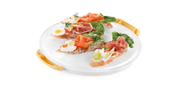 Vynikajúci na prenášanie a podávanie tort, dezertov, jednohubiek, chlebíčkov, ovocia apod. v horúcom lete, vďaka chladiacemu dielu zostávajú pokrmy dlhšie svieže. Vyrobený z prvotriedneho odolného plastu, podnos a poklop sú vhodné do umývačky, chladiaci diel v umývačke neumývajte. 3 roky záruka.