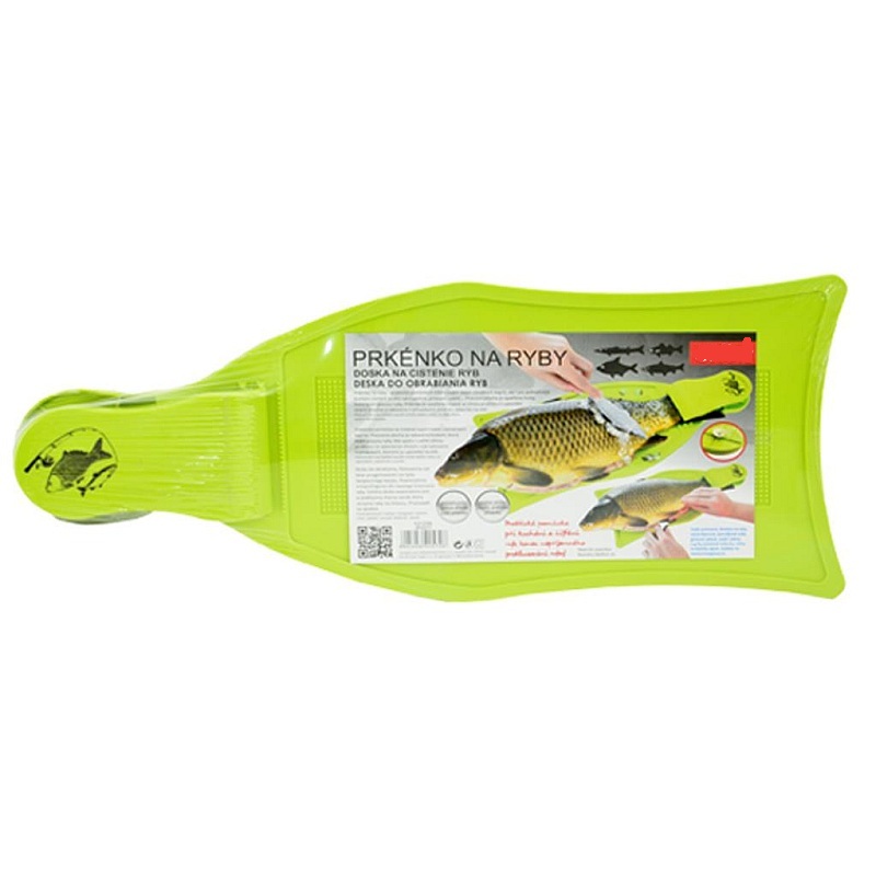Doska na krájanie UH na ryby dĺžka 45cm / šírka 18cm. Doska na čistenie rýb - praktická pomôcka na čistenie šupín nielen vianočných kaprov. Pracovná plocha je vybavená hrotom, ktorý bráni posunu ryby. Doska má sponu s veľmi silnou pružinou na upevnenie chvostu a je vybavená 4 prísavkami, ktorými ju upevníte na stôl. Materiál: plast/kov. Rozmery ( š x d x v ): 18,5 x 45 x 1 cm.
