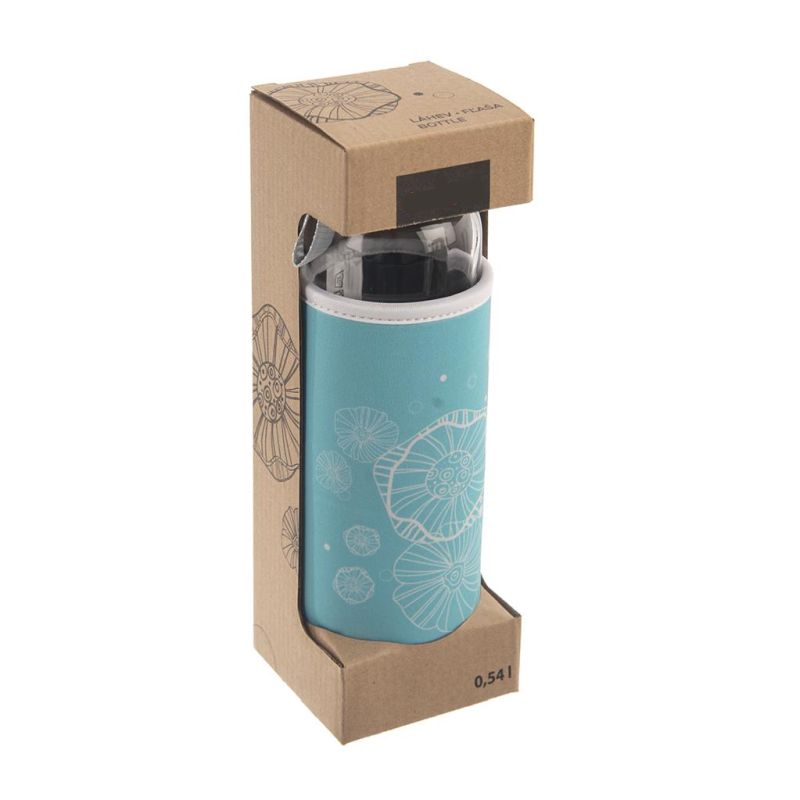 Fľaša z číreho skla, vložená do príjemného neoprénového termoobalu s decentným kvetinovým dekorom, ktorý chráni fľašu pred nárazmi a navyše udržiava nápoj dlhšie v požadovanej teplote, si určite obľúbite.