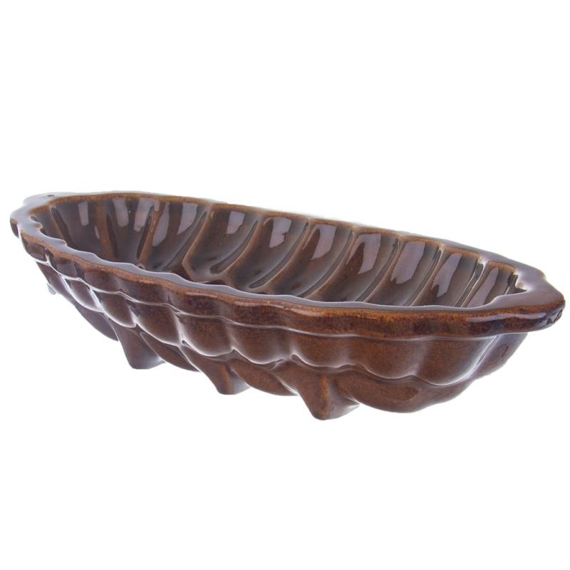 Forma na Vianočku keramika . Keramická forma v tvare VIANOČKY sa Vám bude hodiť predovšetkým v dobe veľkonočných aj vianočných príprav. Upečiete v nej piškótovú alebo maslovú vianočku, ale môžete formu využiť tiež na prípravu aspikov, sekanej, paštéty a iných dobrôt. Forma je z kvalitnej keramiky, glazovaná. Pred pečením odporúčame starostlivo vymazať tukom a vysypať múkou, aby boli zachované pri vyklopení z formy všetky detaily. Keramika výborne vedie teplo a preto zapekaním a pečením v keramike dosiahnete ekonomickú prípravu jedál - zdroj vypínate s predstihom. Nádoby z keramiky majú dlhú životnosť a pri správnom zaobchádzaní Vám vydržia niekoľko rokov. Je ale nutné dodržať určité zásady pri zaobchádzaní s nimi. Výrobky neznášajú okamžité rýchle teplotné zmeny - tepelný šok. Medzi formou a dnom rúry musí byť vždy zaistené prúdenie vzduchu, takže vždy položte výrobok na mriežku. Studenú formu vkladajte do studenej rúry a potom zapnite. Forma je vhodná do akejkoľvek rúry (max. 300 °C) a môžete ju použiť v MVR aj v umývačke riadu. Na chalupe môže byť peknou dekoráciou interiéru. Rozmery: 41 x 19 x 9 cm, vnútorné 35 x 16 x 7 cm