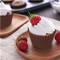Forma silikon košíček MUFFINY 6 ks HNEDÁ . Muffín súprava 6 ks, priemer 6,5 cm, výška 3 cm.Silikónové formy sú ľahké a nepriľnavé, cesto sa v nich nepripeká, nepreberajú pachy z potravín. Odolné teplotám od -40 °C do+220 °C. Hnedá. Ľahké umývanie aj v umývačke, sú veľmi skladné.