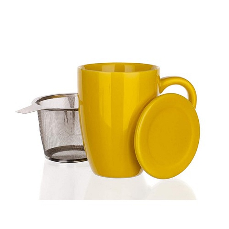 Technické parametre produktu: BANQUET Hrnček s viečkom as nerezovým sitkom Bonnet žltý OK