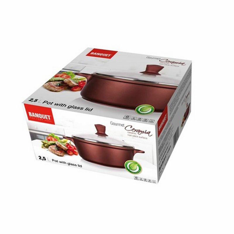 Technické parametre produktu: BANQUET Hrniec s pokrievkou 20x8, 5 cm a silikónovým úchytom Gourmet Ceramia