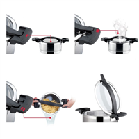 3. VELKÝ OTVOR NA CEDENIE zemiakov, cestovín a pre intenzívne varenie bez prekypenia. Pokrievku možno odkladať do úchytov, para steká späť do riadu. Vybavená extra silným sendvičovým dnom, stupnicou pre ľahké odmeriavanie a úchyty z odolného plastu. Vyrobená z prvotriednej nehrdzavejúcej ocele 18/10, vhodná pre všetky typy sporákov - plynové, elektrické, sklokeramické a indukčné, vhodná do umývačky. 5 rokov záruka.