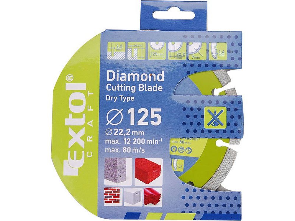 Kotúč rezný diamantový 180x22,2mm, Extol Craft pre suché rezanie. Vhodný na rezanie betónu , tehál ,škridiel a pod.