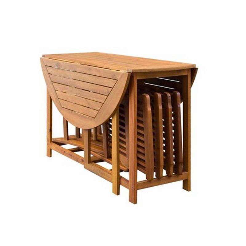 Nábytok záhradný 5-dielny MONTEREY - 1x stôl + 4x stolička, vyrobené z akácií tropického dreva, obsahuje stôl 120 cm, výška 72cm, 4x stoličky 46,5 x58x92, 5cm, pri stole sú sklápacie bočnice - možné upraviť / zložiť pre lepšie skladovanie. Obsahuje: 1x stôl 120x72cm + 4x stoličky 46,5 x58x92, 5cm. Akácia je veľmi odolná proti starnutiu a biologickej degradácii, pri odporúčanej údržbe teakovým olejom je životnosť nábytku veľmi dlhá.