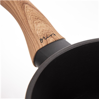 Rajnica GRANDE WOODEN priemer 16 cm . Rajnica s výlevkou s veľmi kvalitným nepriľnavým povrchom. Môžete v nej variť, dusiť, opekať s minimálnou potrebou tuku. Materiál: hliník s povrchovou úpravou – vnútri je 2vrstvový nepriľnavý povrch, v ňom vrstva PTFE, bakelit. Možnosť zavesenia. Rozmery: priemer 16 cm, výška 8 cm, objem 1,4 l. Vhodná na všetky typy spotrebičov vrátane indukcie. Nádoby Grande sú vhodné do umývačky riadu, avšak vplyvom agresívnych čistiacich prostriedkov môže dôjsť k porušeniu silikónovej vonkajšej vrstvy držadiel alebo k nepatrnej oxidácií dna. Tento stav nemá vplyv na proces varenia, nie je zdravotne závadný a nemôže byť dôvodom reklamácie. Ak sa chcete tomuto vyhnúť, riad v umývačke neumývajte. Odporúčame použitie kuchynskej chňapky.