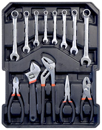 Nevyhnutnou súčasťou dielne je kvalitná 117-dielna sada náradia Strend Pro uložená v praktickom ALU kufri, v ktorom má každý diel svoje úložné miesto, preto nehrozí, že v ňom budete mať neporiadok. Obsahuje nasledujúce náradie: