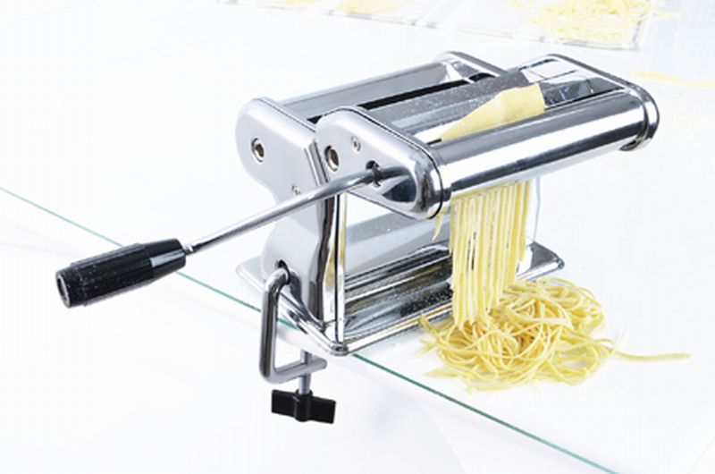 Strojček na cestoviny set FRANCESCO. Ručný mechanický strojček s nástavcami na prípravu domácich cestovín. Sami si profesionálne vyrobíte cestoviny z domácich surovín. Strojček je celokovový, k pracovnej doske je uchytený pomocou kovovej skrutky. Strojček ľahko a rýchlo zostavíte, pohodlne rozložíte a očistíte. Set obsahuje: nástavec na rozvaľkanie cesta - šírka rozvaľkaného cesta max. 150 mm, nastaviteľných 9 stupňov hrúbky cesta, dvojitý nástavec na výrobu klasických polievkových rezancov (1 mm) a na výrobu širokých cestovín - lasagne (0,5 cm), dvojitý nástavec na výrobu špagiet (2 mm) a na výrobu širších rezancov - fetuciny (6,6 mm), nástavec na výrobu plnených raviol - mäsových, syrových, marmeládových či tvarohových obdĺžnikov (4,5 cm), radielko na prípravu správnej šírky cesta na výrobu raviol a radielko so 6 nástavcami, s ktorými vytvoríte rovnomerné rôzne široké pruhy, či dvoma ťahmi rovnomerné štvorčeky , ale tiež pomocou priloženého nástavca ľahko vykrájate rôzne veľké kolieska.