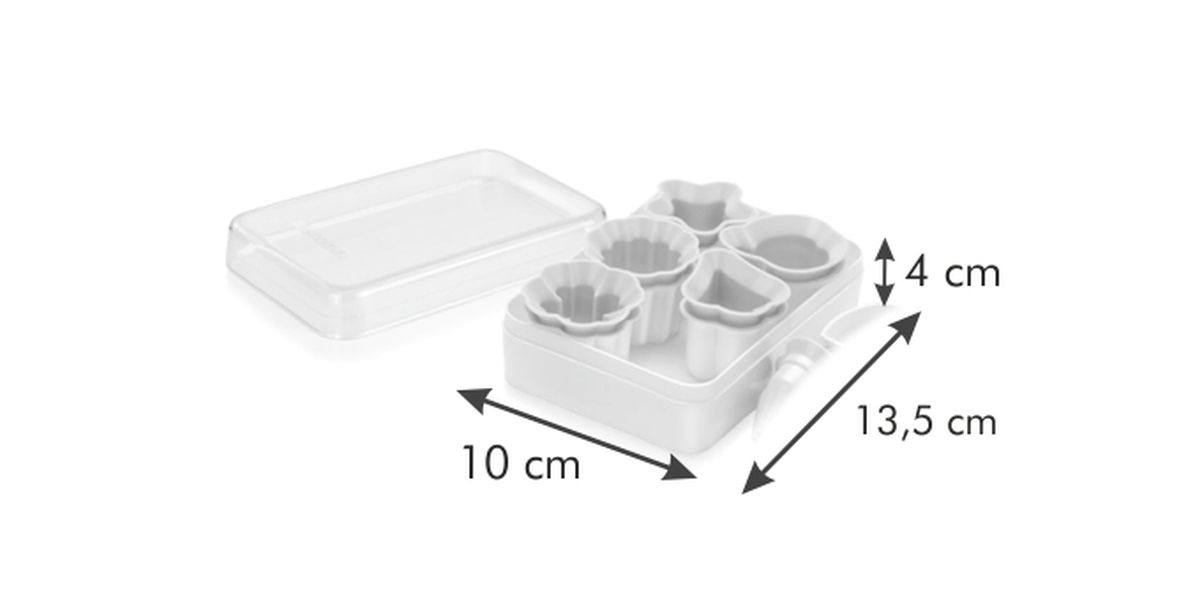Vykrajovače na linecké Tescoma sú vykrajovače na prípravu originálne tvarovaného lineckého pečiva, v krabičke pre pohodlné skladovanie. Vyrobené z prvotriedneho odolného plastu, vhodné do umývačky. 3 roky záruka. Použitie: Bielym vykrajovačom vykrajujte spodnú časť lineckého, hornú časť vykrajujte oboma vykrajovačmi súčasne.