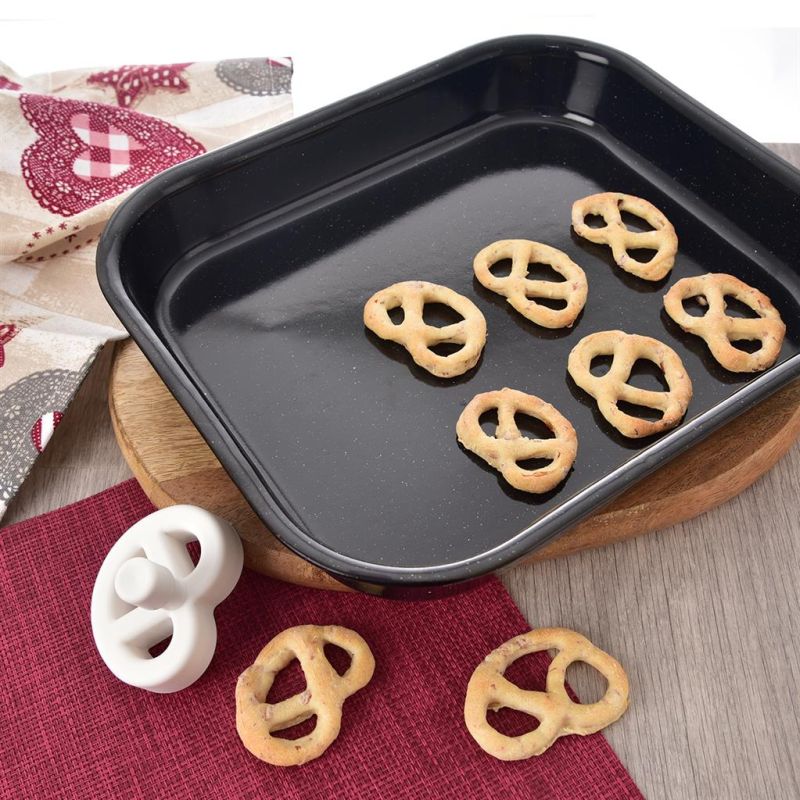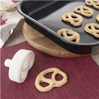 Vykrajovačka na praclík . Formička s piestom a vykrajovačkou v tvare praclíka pomôže ľahko pripraviť slané aj sladké dobroty. Na chrumkavé zlaté praclíky sypané hrubozrnnou soľou ide ísť aj inak, než vyvaľkať tenké tyčinky a stáčať ich do typického tvaru.