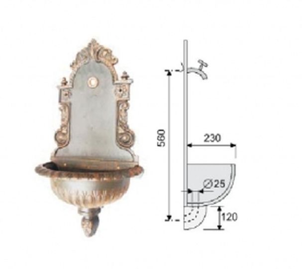 Kvaltné záhradné liatinové umývadlo. Robustné a ťažké liatinové umývadlo s výtokovou garnitúrou.