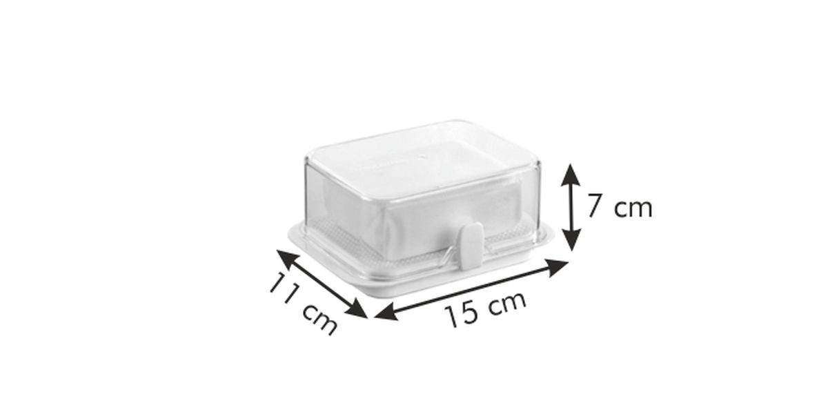 Zdravá dóza do chladničky Tescoma je vyrobená zo špičkového plastového materiálu určeného pre zdravotníctvo a farmáciu, vynikajúca pre hygienické uloženie masla v chladničke. Použitý materiál je neutrálny, neovplyvňuje kvalitu masla ani pri dlhodobom skladovaní. Dno s malými hrotmi uľahčuje krájanie, maslo nekĺže. Dodávaná s náhradnými krídelkami. Vhodná do umývačky, pre dokonalé vyčistenie najprv vyberte dno s hrotmi z maselničky. 3 roky záruka.