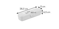 Zdravá dóza na bagetu Tescoma DINO. Zdravá dóza na bagetu Tescoma vyrobená zo špičkového plastového materiálu určeného pre zdravotníctvo a farmáciu, ktorý je úplne neutrálny a nijako neovplyvňuje kvalitu uložených pokrmov. Vynikajúca na uloženie obloženej bagety, rožka atď. do školy, na výlety a pod. Vhodná do umývačky. 3 roky záruka.