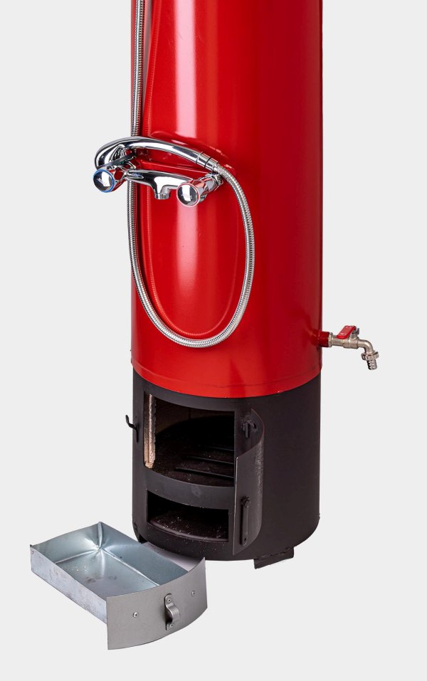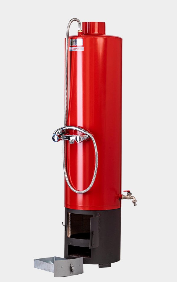 Ohrievač vody na tuhé palivo 80 L červený . Ohrievač vody na tuhé palivo je určený na produkciu teplej úžitkovej s teplotou 55-60 °C pre domácosti a rekreačné chaty. V tomto prípade je zdroj ohrevu vody prostredníctvom tuhého paliva . Priemer dymovodu 132mm .